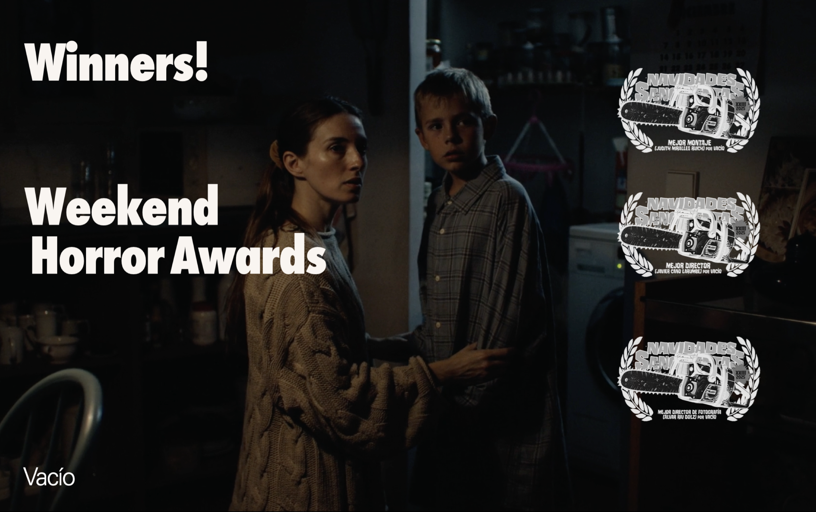 El cortometraje Vacío continúa su recorrido por festivales con sus primeros galardones. La obra, dirigida por J. Cano Larumbe y producida por Forty Entertainment, Mamma Team y Arcadia Motion Pictures, con distribución de Selected Films, ha sido premiada en los Weekend Horror Awards, donde ha recibido tres reconocimientos destacados.